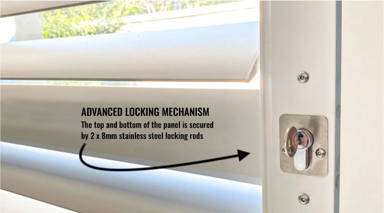 • Stainless Steel sliding latches or Locks with keys are the 2 options for securing the shutters.
